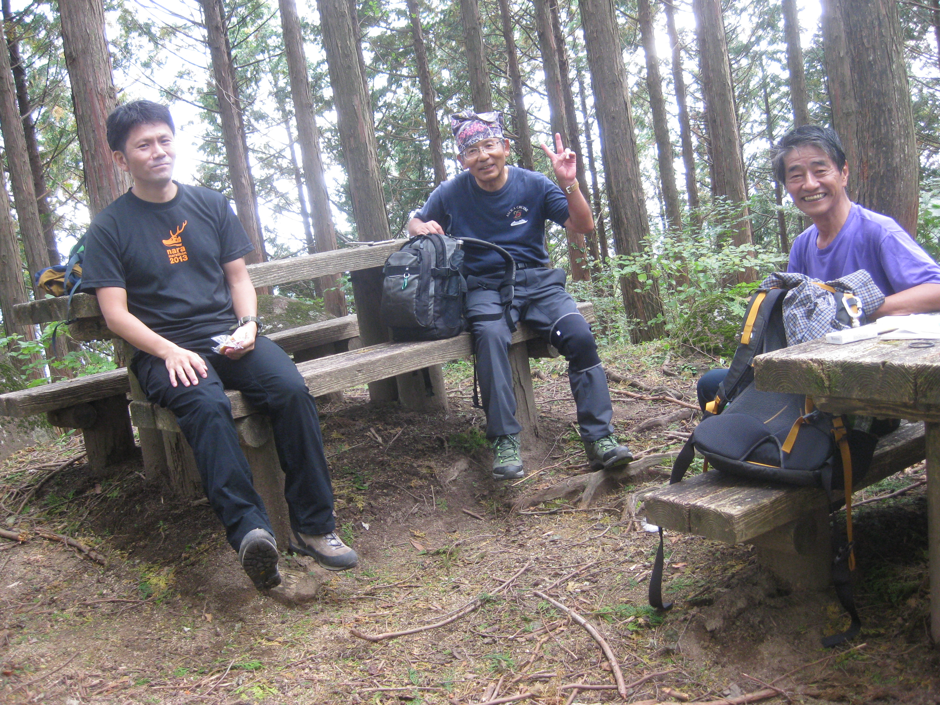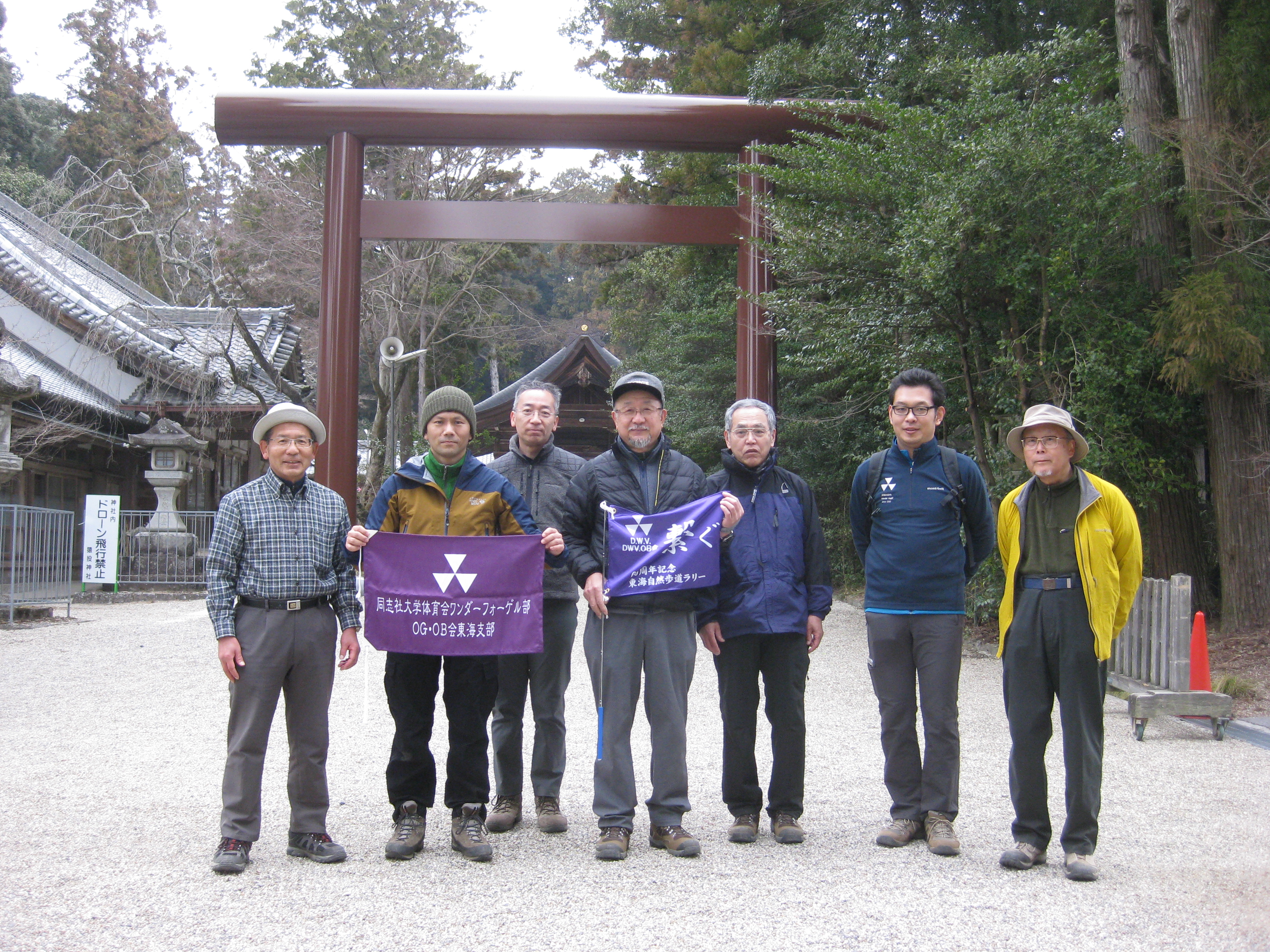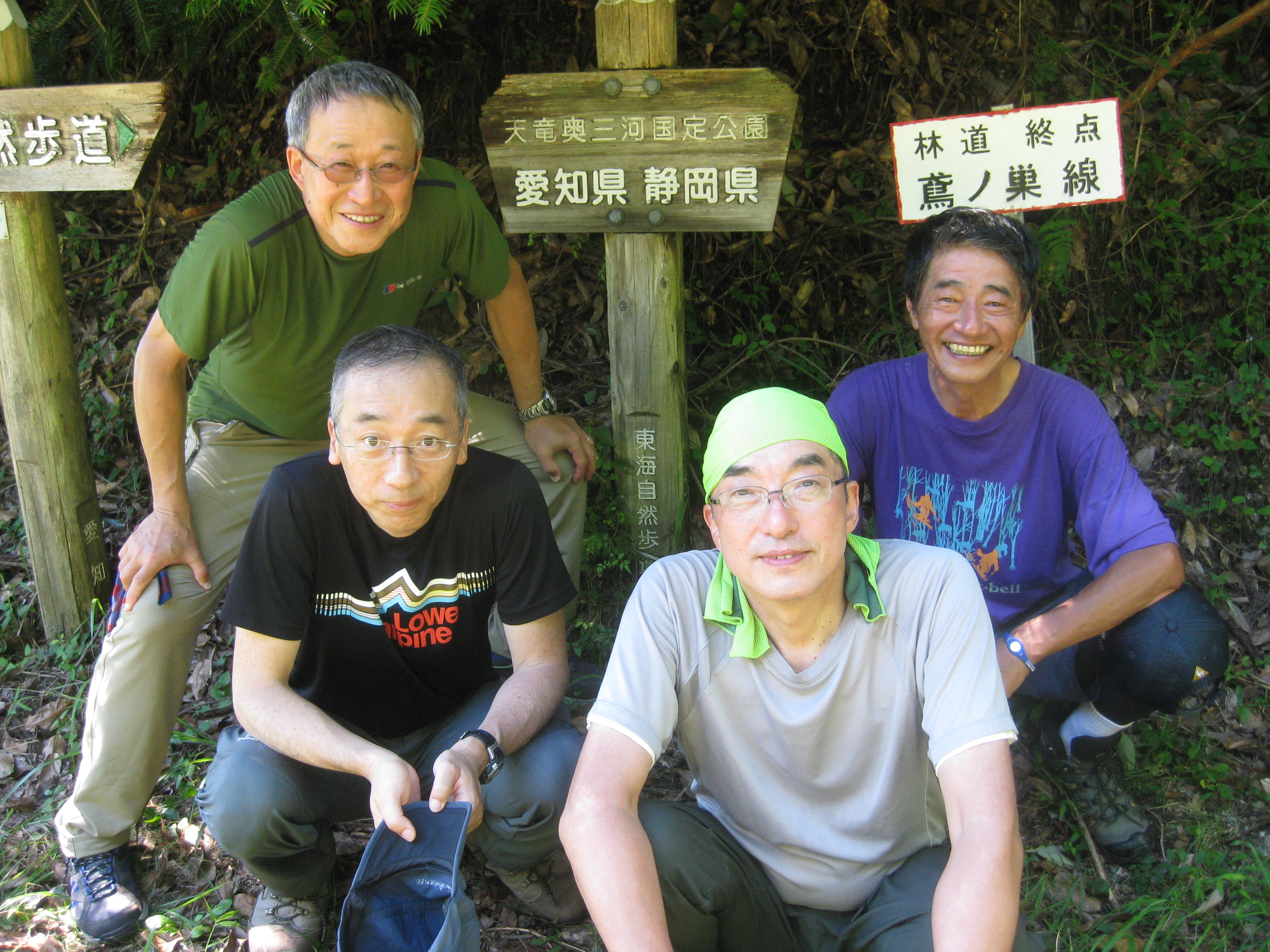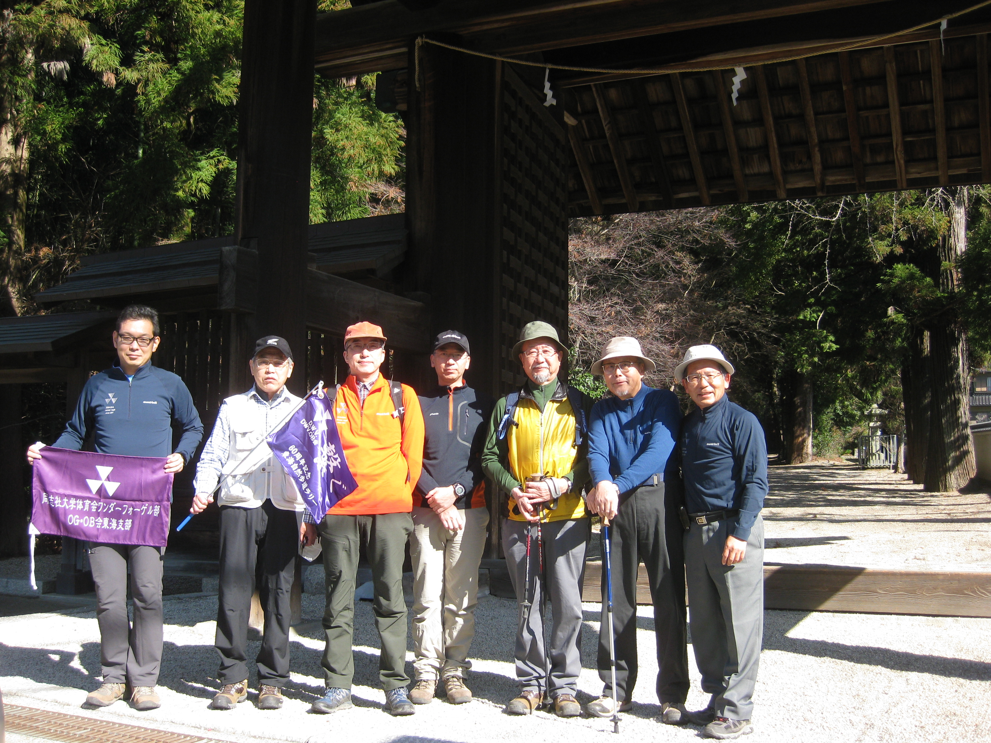 前回ゴールの足助八幡宮前に9時30分集合、予報より早く雨が降っている。8回実施中3回が雨、誰が雨男か! 9時45分出発、10時20分安実京町到着する。ここまではロード。ここから山道に入いり高度を稼ぐ。再びロードとなり外国人女性の単独ハイカーとすれ違い、地元の人に「頑張って」と声をかけられる。老さわらの巨木を過ぎ、11時10分室口町分岐に出、公民館の軒先にてダウン。雨の降り続く中を12時30分平勝寺到着、ここでも本堂軒先をお借りして腹ごしらえする。予定より順調なため金蔵連峠でのタクシーを1時間早めの15時に変更連絡を入れる。12時55分出発、ロード・山道を繰り返す。山道は雨水が流れ、さながら川の様相をなしている。13時50分金蔵連峠まで50分の表示がある道標にて最後のダウン。14時45分真新しいトイレのある金蔵連峠に到着する。すぐにタクシーが到着し、足助バス停に向かう。