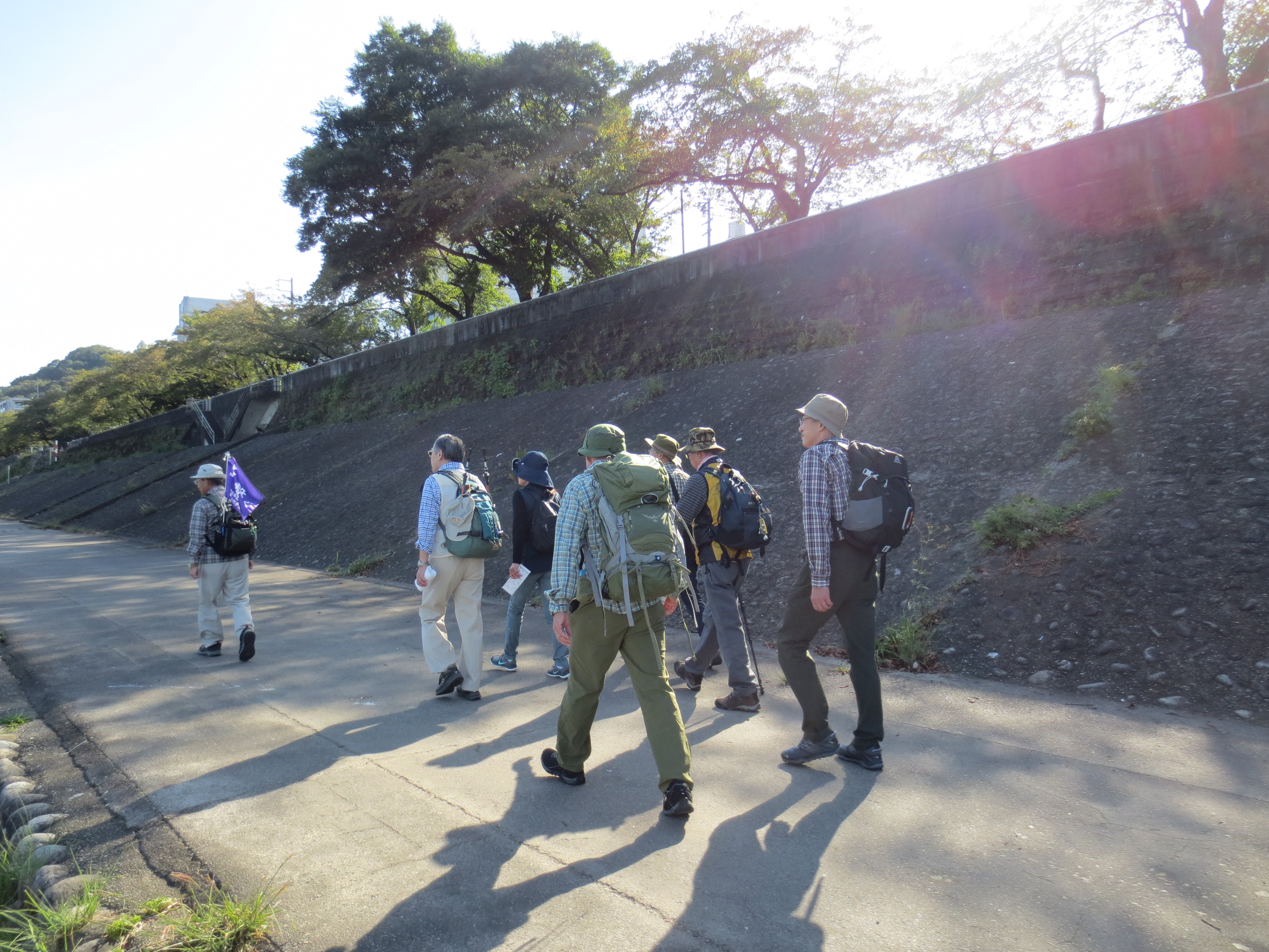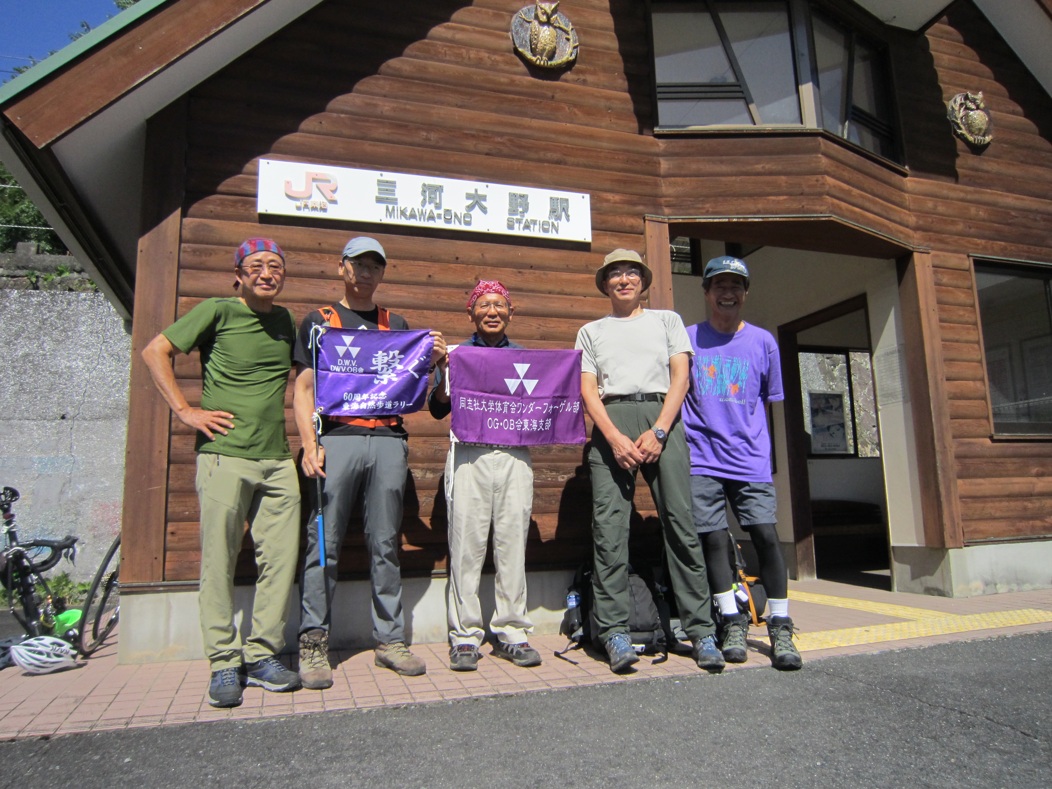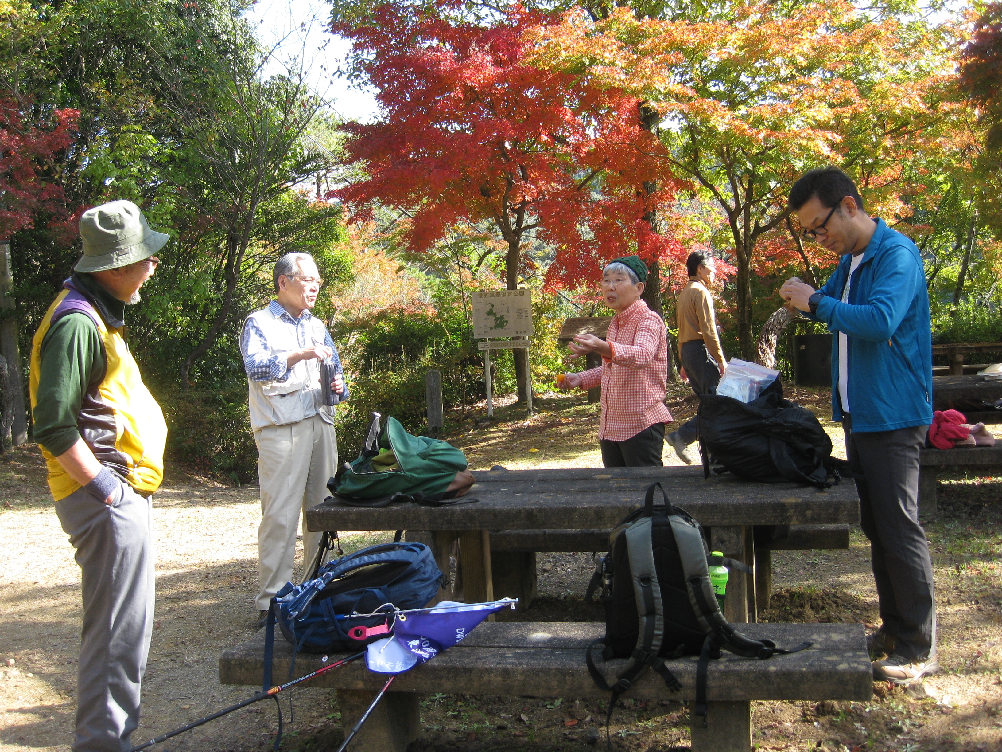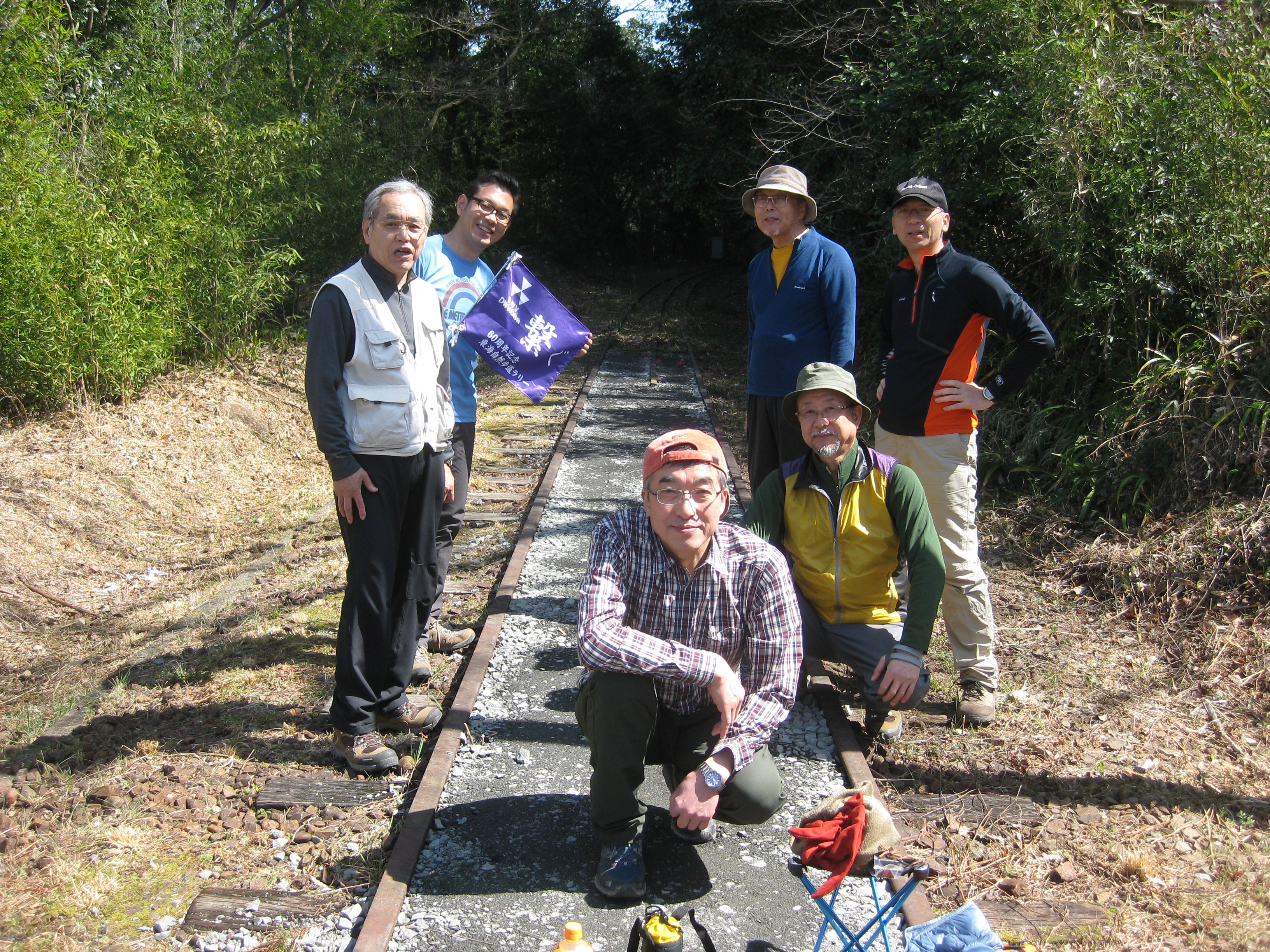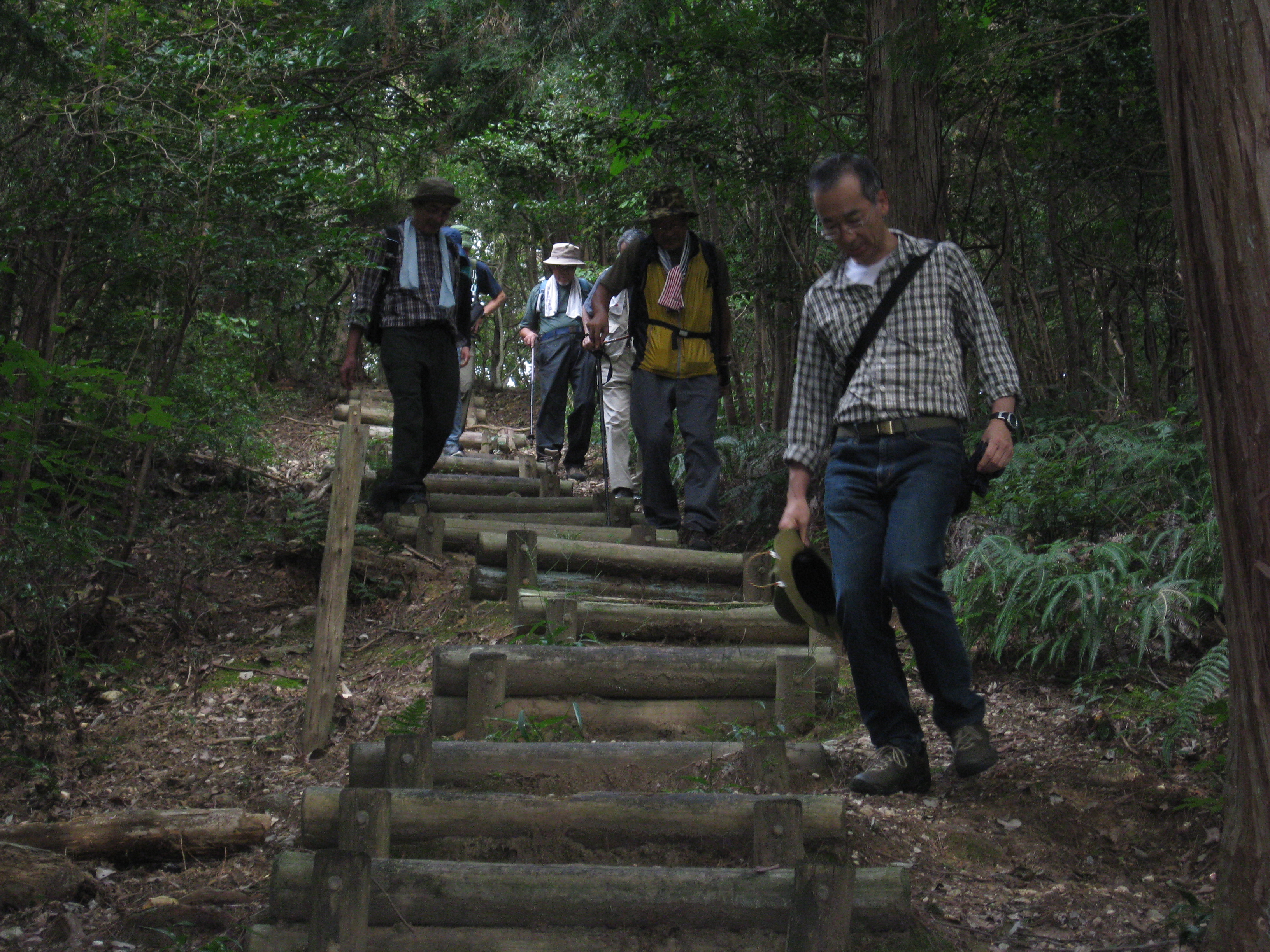 前回ゴールの足助八幡宮前に9時30分集合、予報より早く雨が降っている。8回実施中3回が雨、誰が雨男か! 9時45分出発、10時20分安実京町到着する。ここまではロード。ここから山道に入いり高度を稼ぐ。再びロードとなり外国人女性の単独ハイカーとすれ違い、地元の人に「頑張って」と声をかけられる。老さわらの巨木を過ぎ、11時10分室口町分岐に出、公民館の軒先にてダウン。雨の降り続く中を12時30分平勝寺到着、ここでも本堂軒先をお借りして腹ごしらえする。予定より順調なため金蔵連峠でのタクシーを1時間早めの15時に変更連絡を入れる。12時55分出発、ロード・山道を繰り返す。山道は雨水が流れ、さながら川の様相をなしている。13時50分金蔵連峠まで50分の表示がある道標にて最後のダウン。14時45分真新しいトイレのある金蔵連峠に到着する。すぐにタクシーが到着し、足助バス停に向かう。
